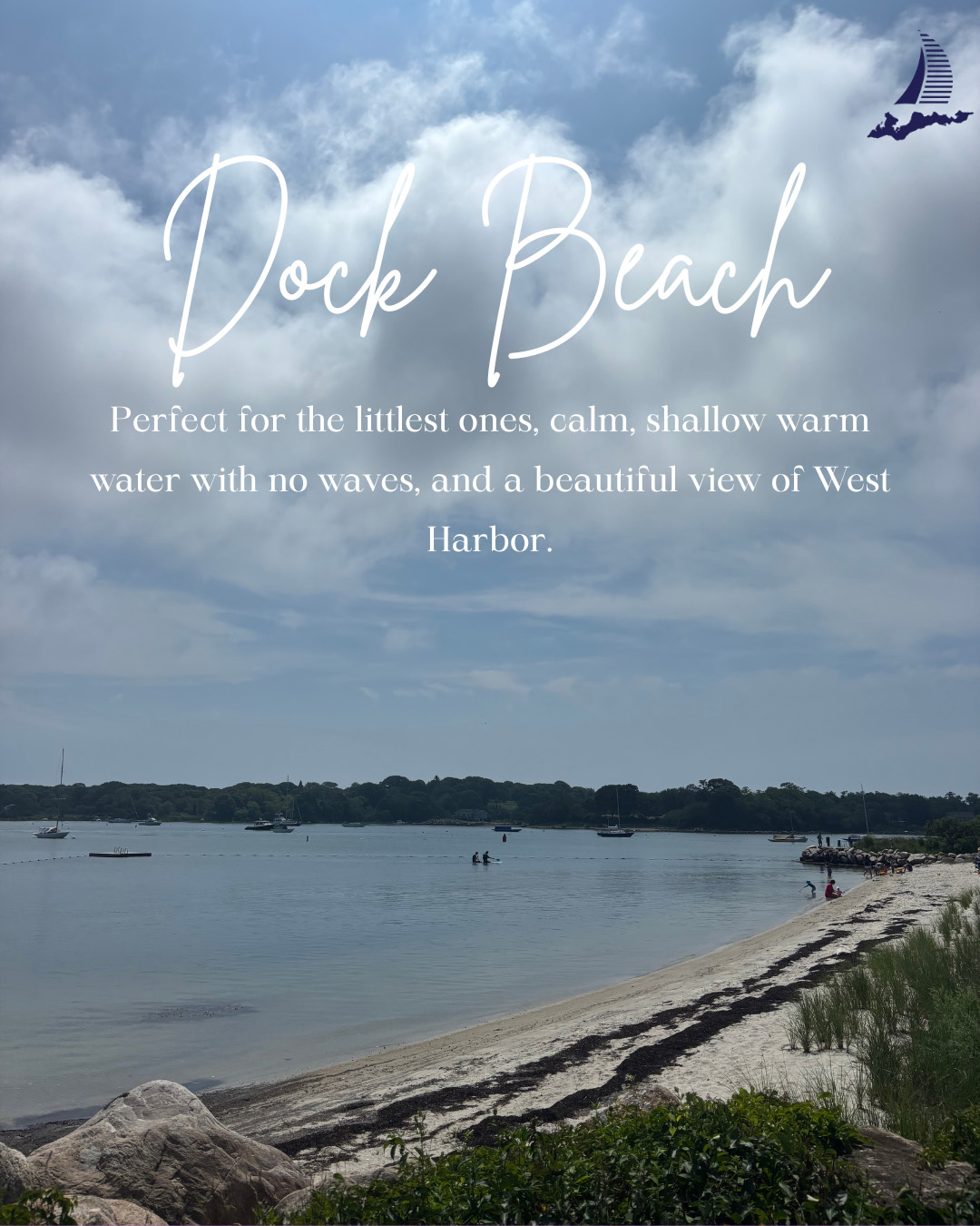 Perfect for the littlest ones, calm, shallow warm water with no waves, and a beautiful view of West Harbor.