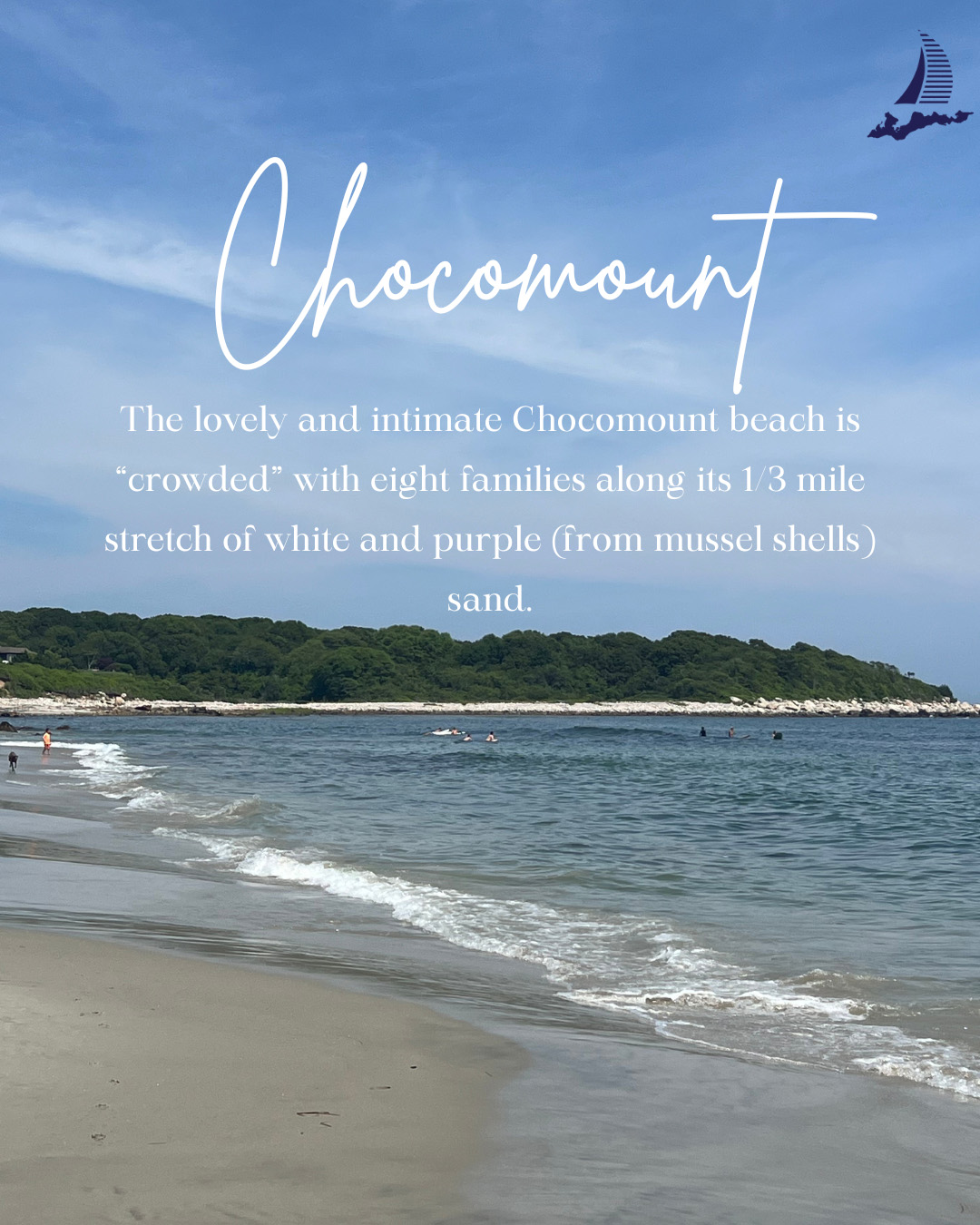 The lovely and intimate Chocomount beach is “crowded” with eight families along its 1/3 mile stretch of white and purple (from mussel shells) sand.