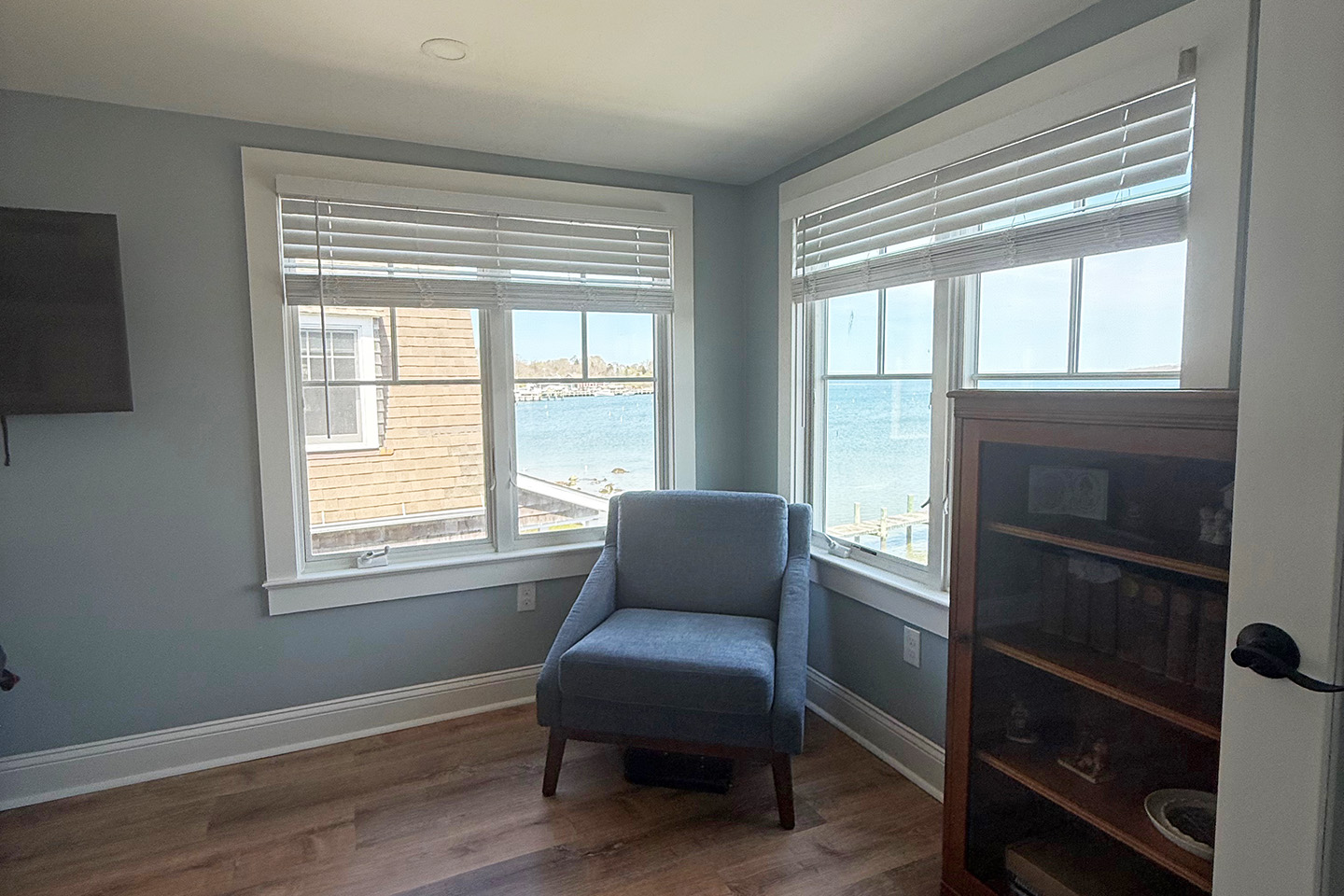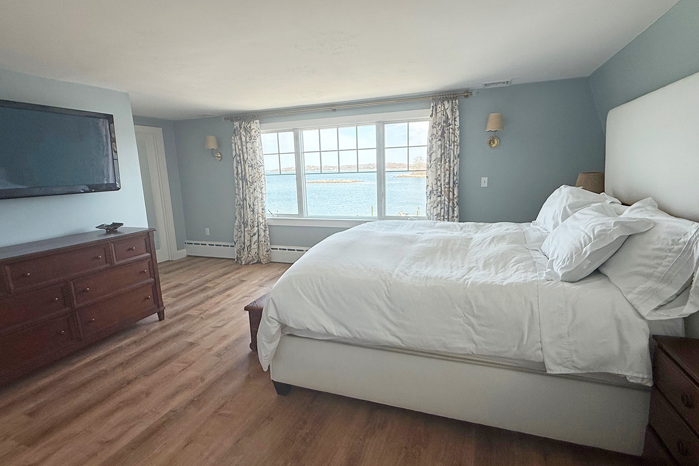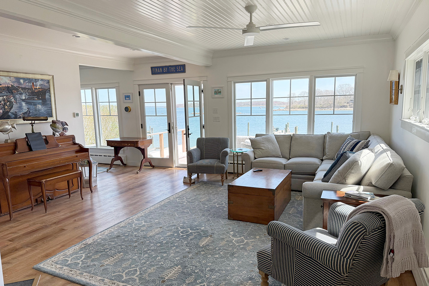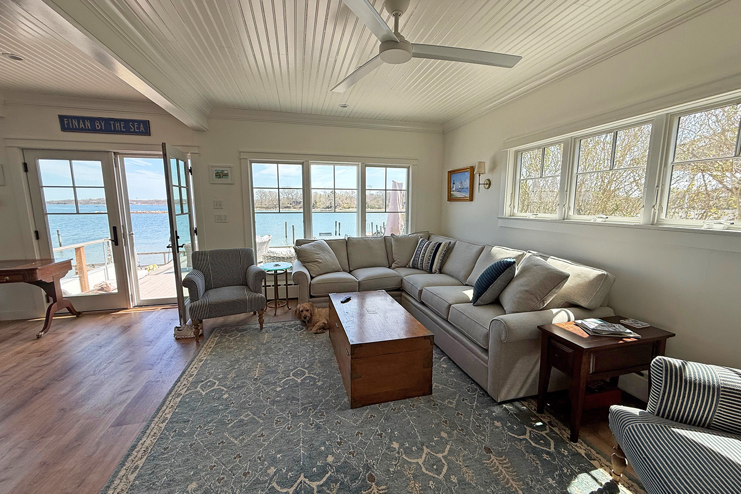 Discover the perfect island escape at Finan by the Sea, a serene waterfront retreat overlooking West Harbor, the yacht club, and the distant Connecticut shoreline. With five bedrooms and four bathrooms accommodating up to ten guests, this home is designed for relaxed gatherings with family and friends.