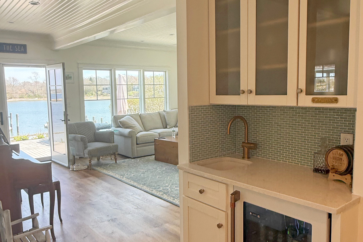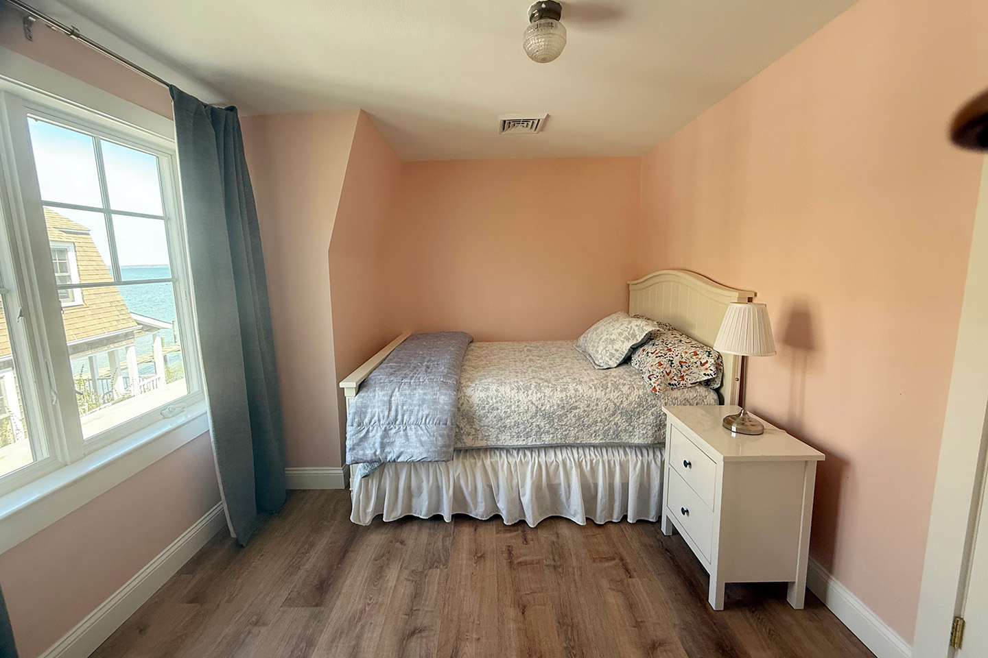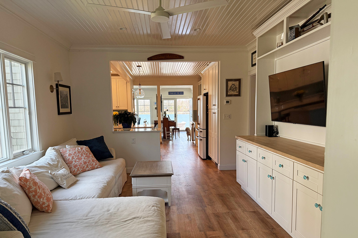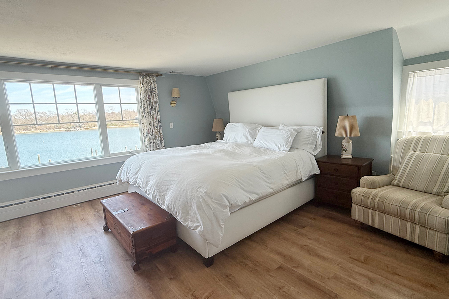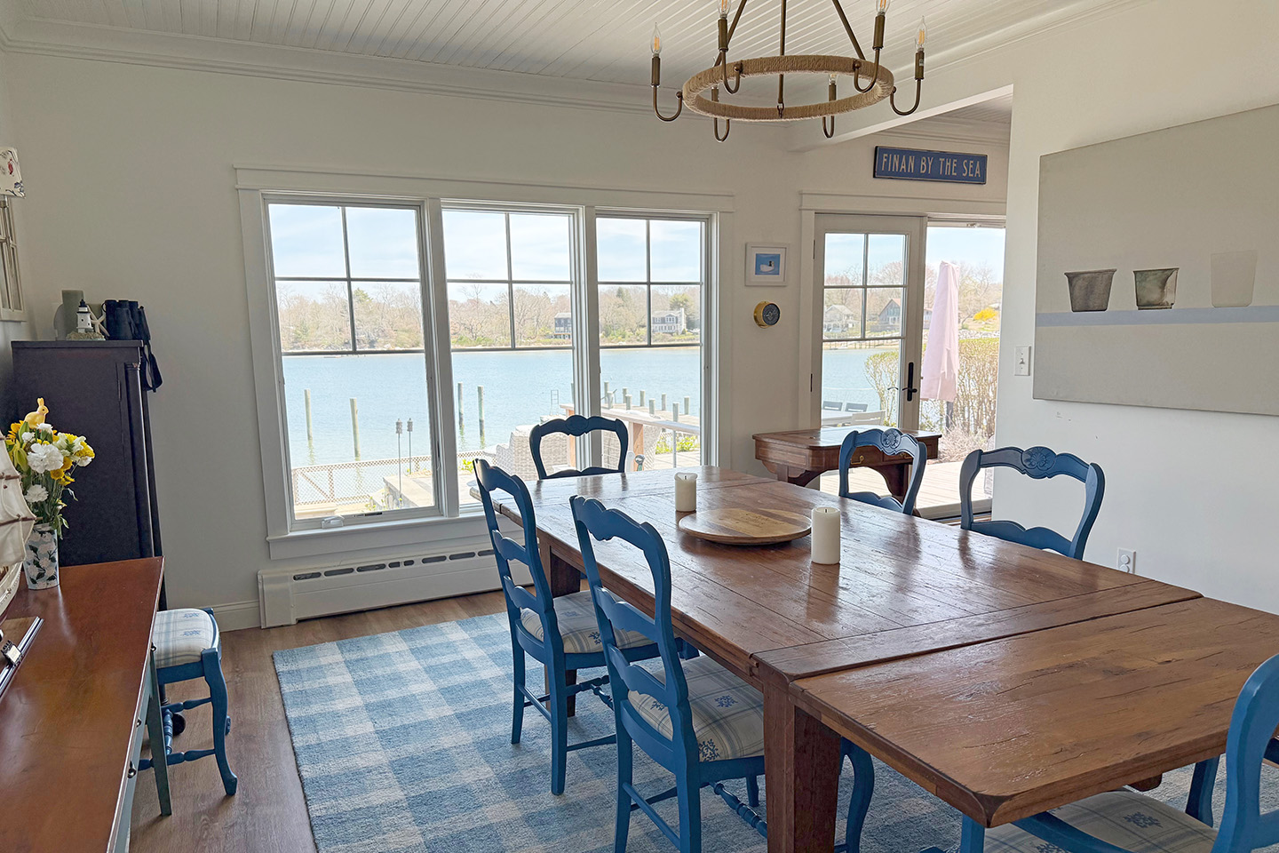 Discover the perfect island escape at Finan by the Sea, a serene waterfront retreat overlooking West Harbor, the yacht club, and the distant Connecticut shoreline. With five bedrooms and four bathrooms accommodating up to ten guests, this home is designed for relaxed gatherings with family and friends.