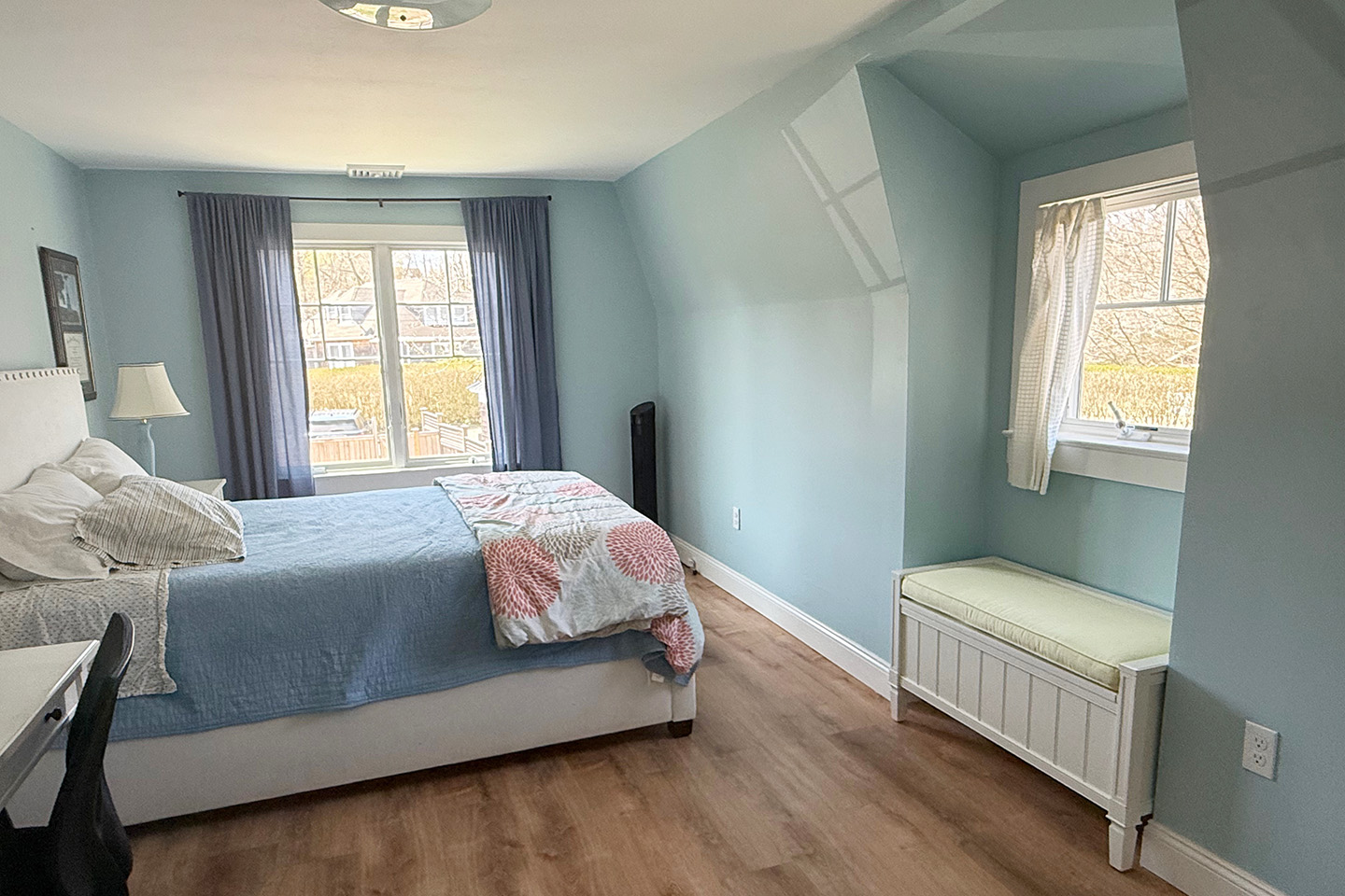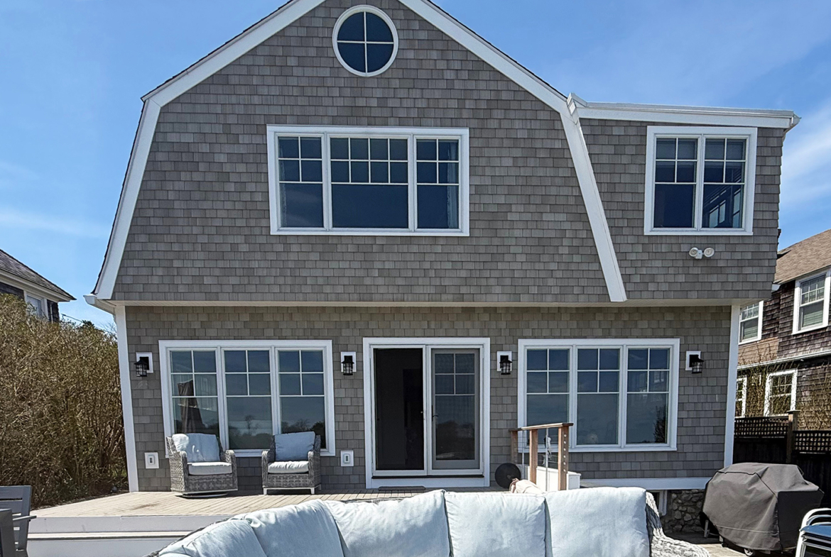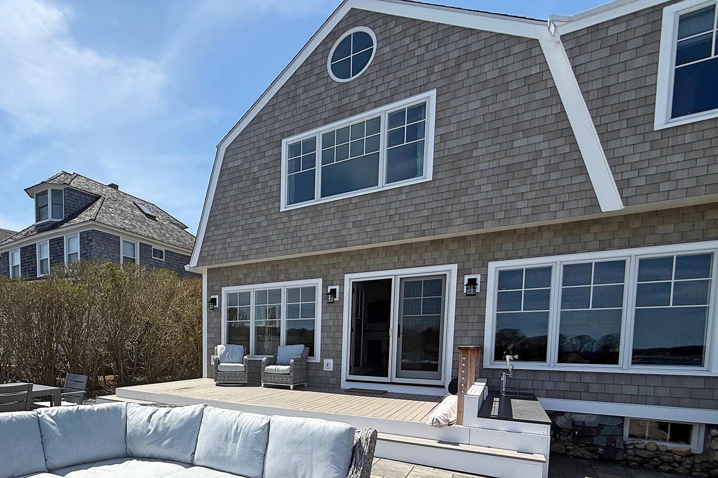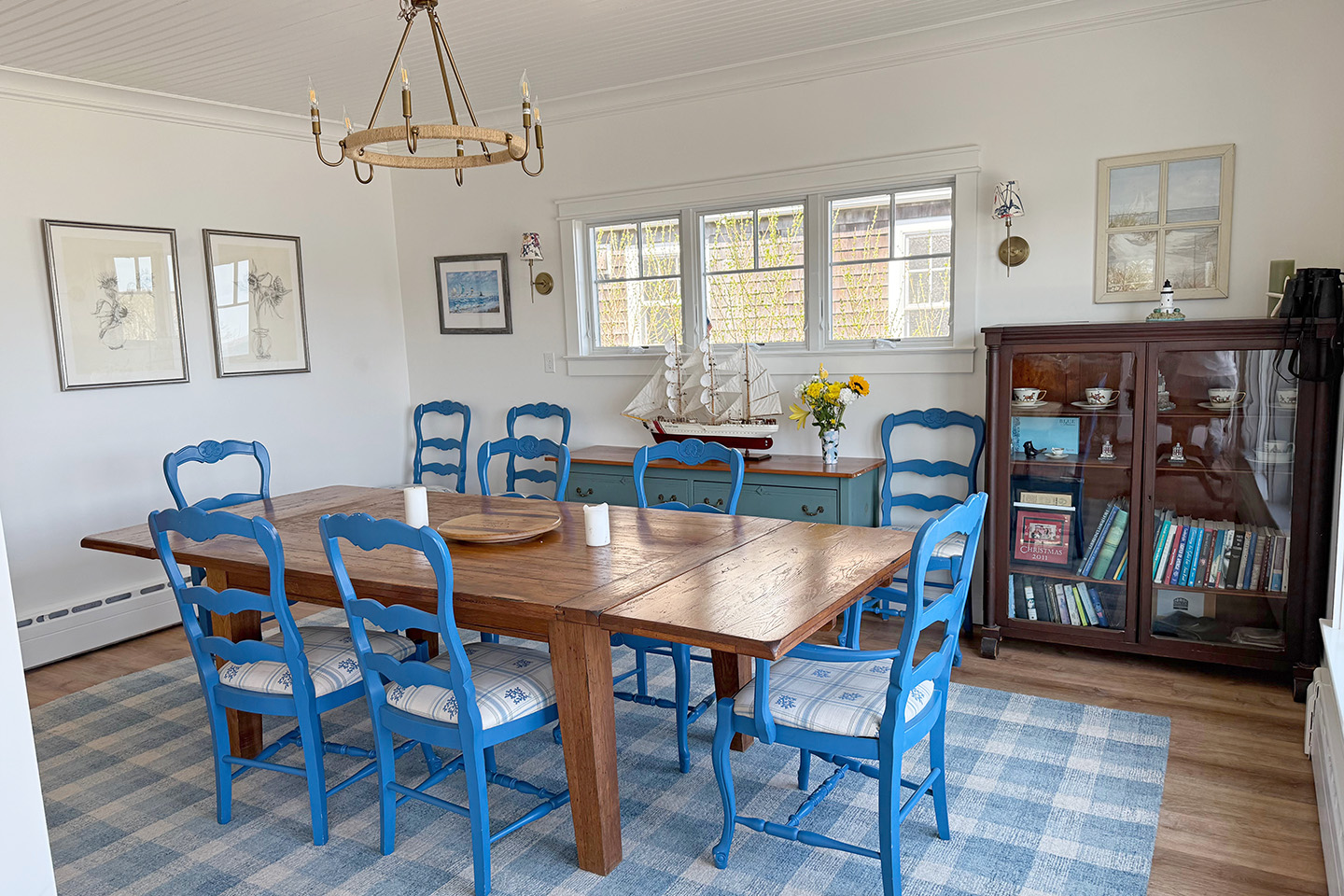 Discover the perfect island escape at Finan by the Sea, a serene waterfront retreat overlooking West Harbor, the yacht club, and the distant Connecticut shoreline. With five bedrooms and four bathrooms accommodating up to ten guests, this home is designed for relaxed gatherings with family and friends.