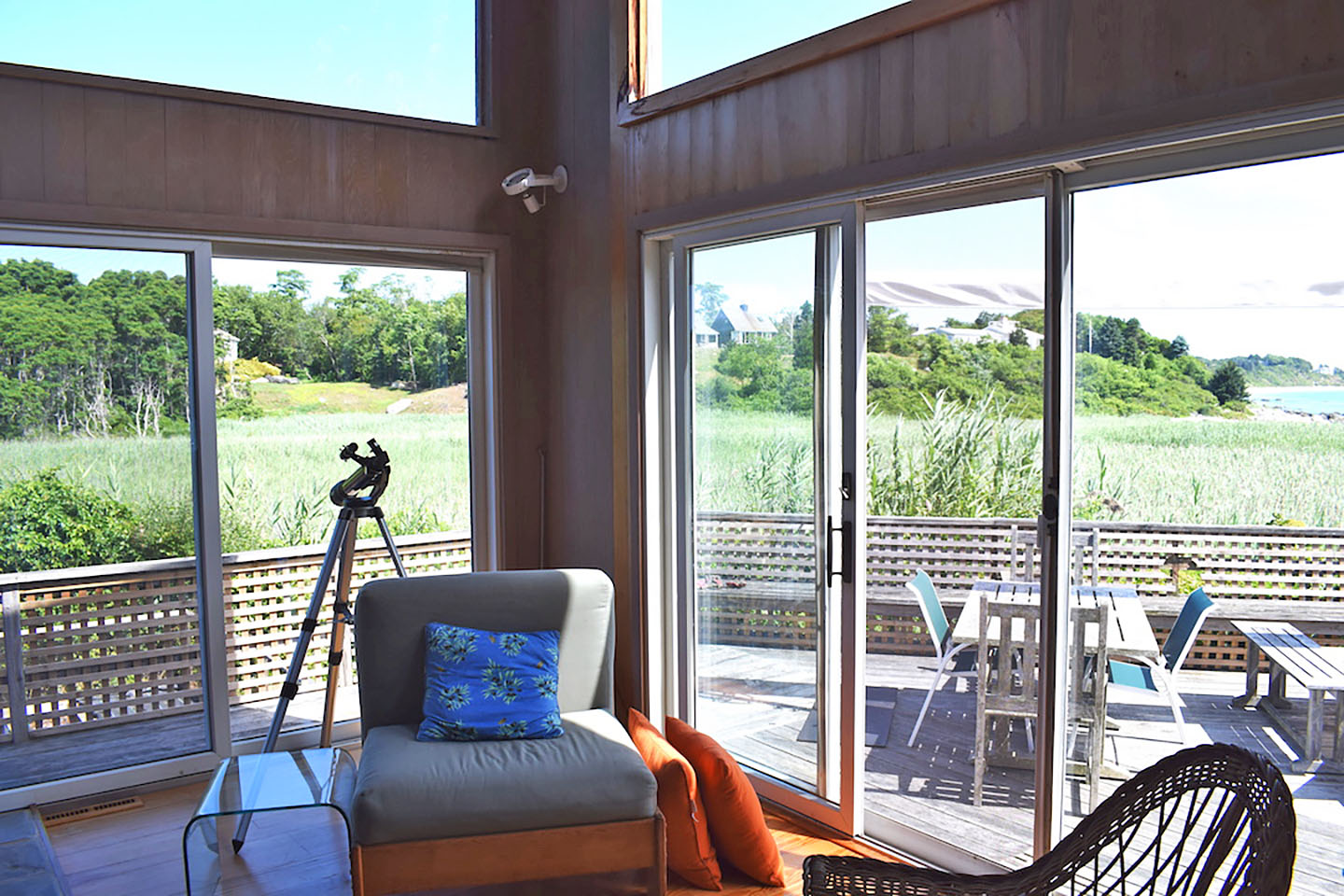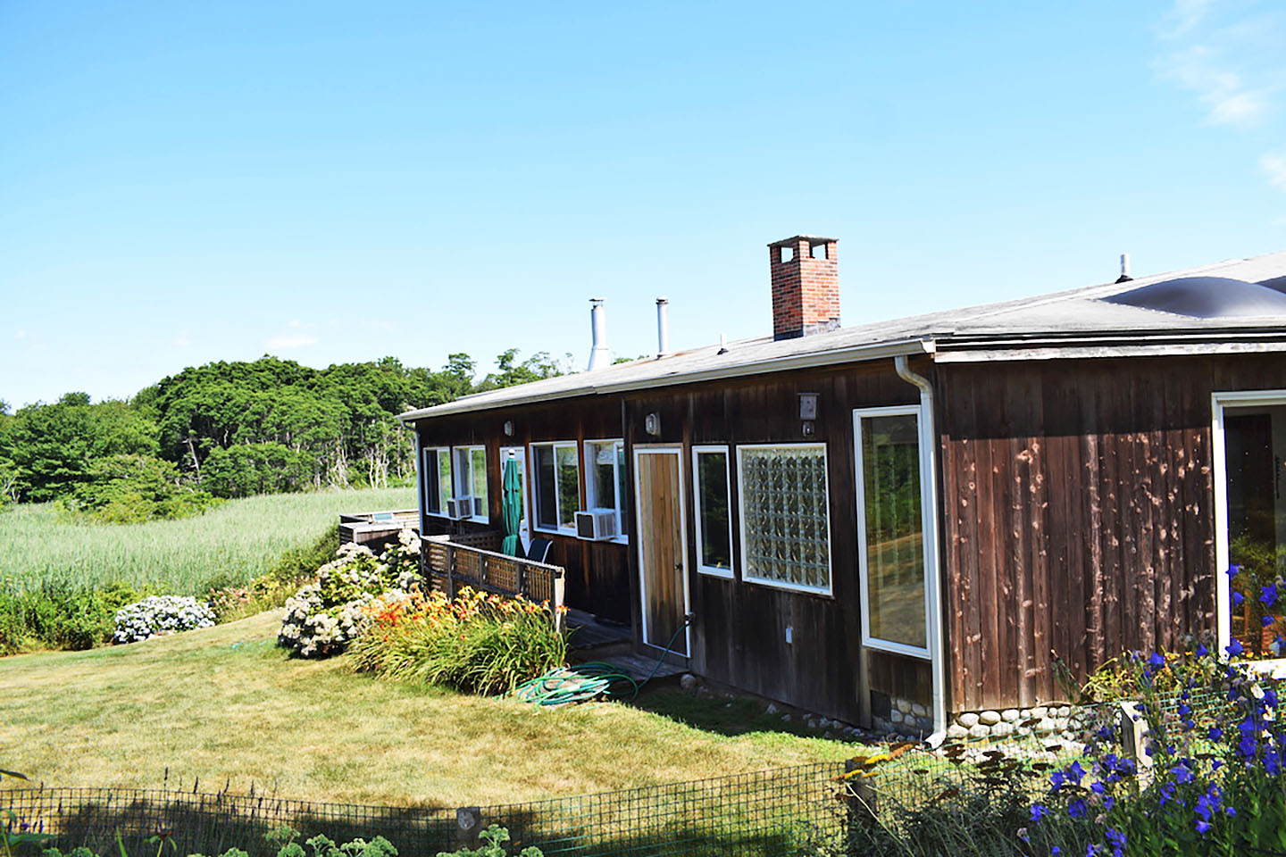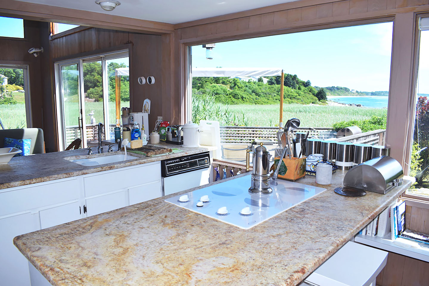 Enter down the private driveway to your personal oasis. Bordered by well-kept grounds, foliage, and stunning views of Isabella Beach, this contemporary home is ideal for writing, relaxing, and enjoying the beauty of Fishers Island’s nature. Inside, the comfortable 3 bedroom 2 bathroom layout is flooded with natural light from large picture windows and skylights. The open, single floor layout of the main living space provides plenty of space to enjoy. In the center of the living space is the kitchen with newer electric stove top, electric oven, dishwasher, and microwave. Curl up with a book in the enclosed sunroom, lounge on the large deck and grill in the outdoor kitchen, or melt the day’s stress away in the jacuzzi tub. Easily walk to Isabella Beach or take a bike ride up the East End bike path, to which the house is closely near. Absorb the stunning surroundings in this slice of paradise.