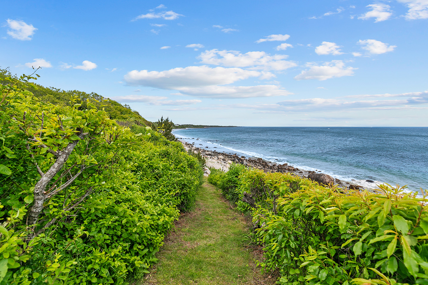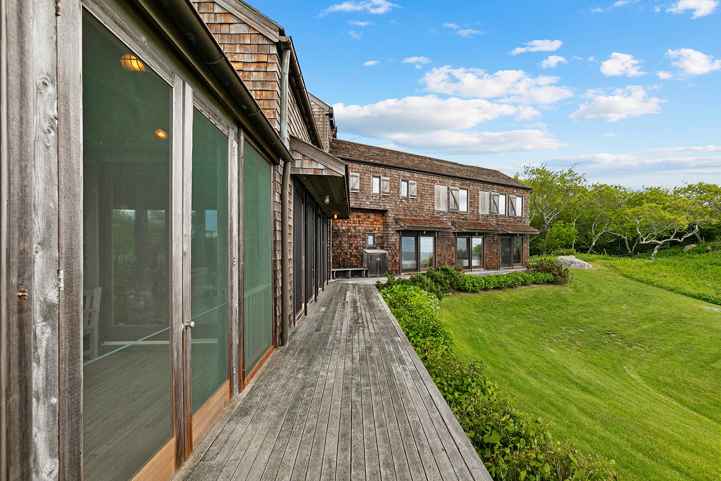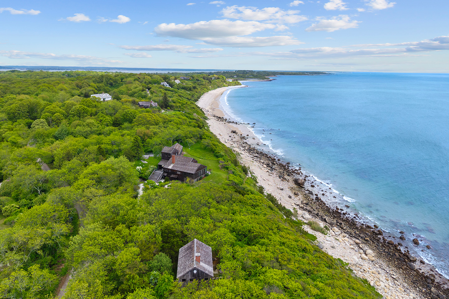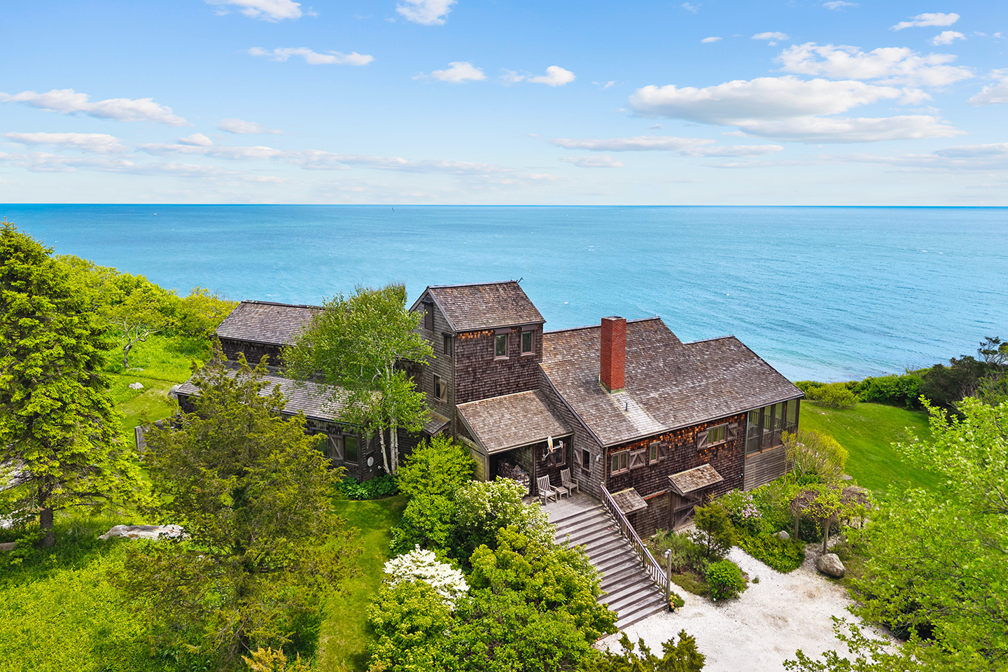Nestled on a high bluff is approx. 4.7 private and lush acres of trees, lawns and perennial gardens with 665 feet of frontage on Block Island Sound with a path to a private beach and access to beautiful Isabella Beach, Two Rocks Estate on Isabella provides the perfect venue for nature lovers, sports enthusiasts and families. Enjoy watching regattas sail by, hawks hunt and osprey fish. Take in ocean breezes and breathtaking views from almost every room of this comfortable year-round island home designed by Mark Denton and built by HP Broom in 1998.