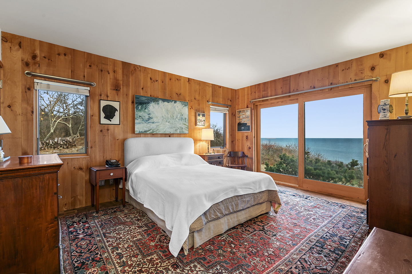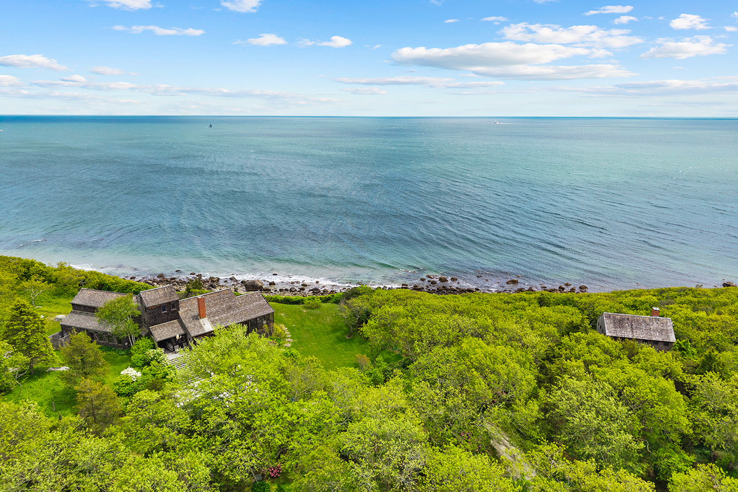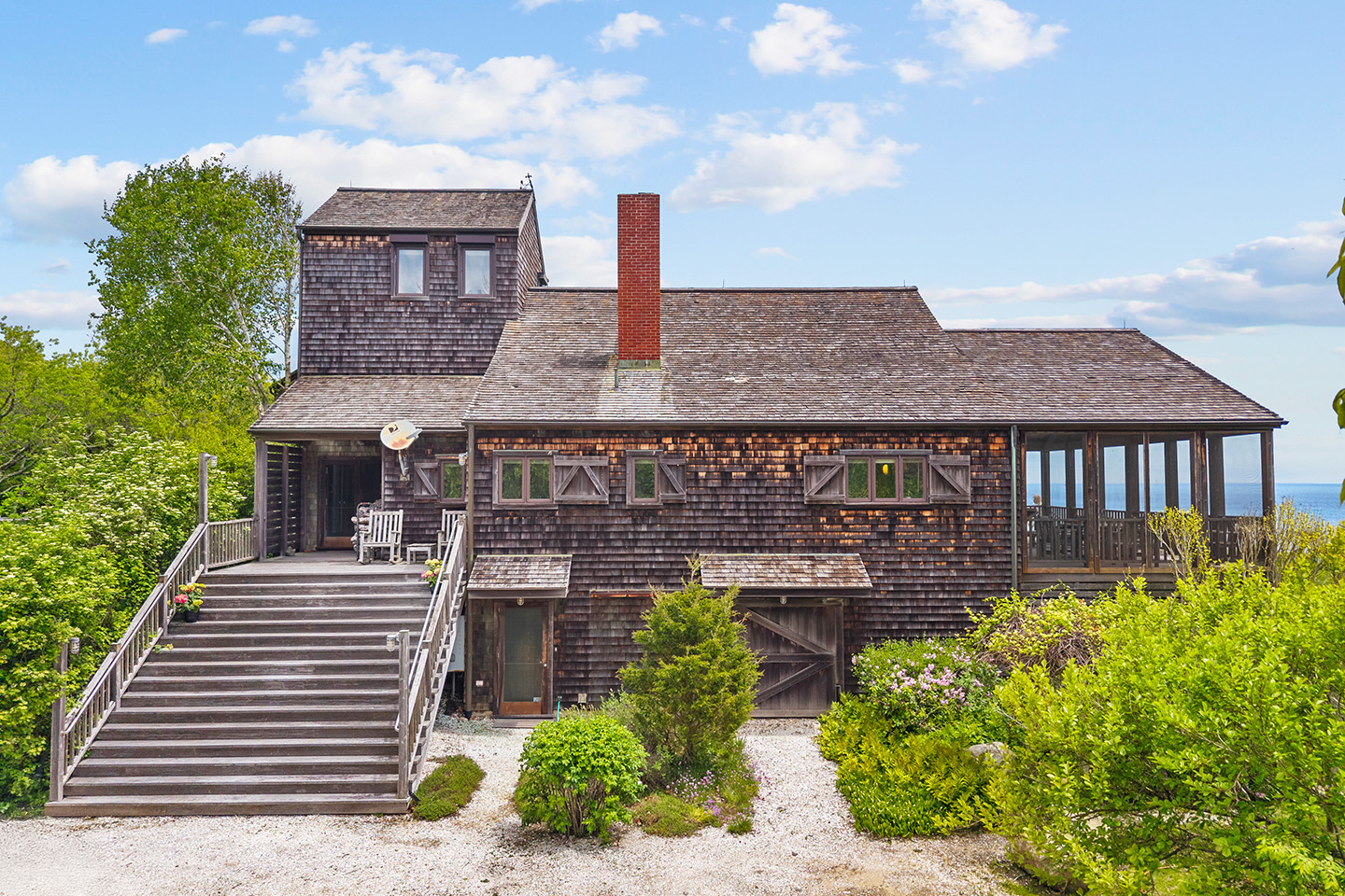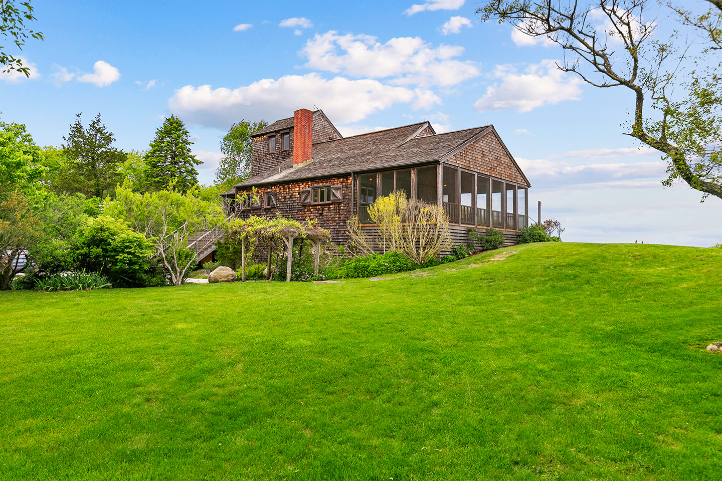 Nestled on a high bluff is approx. 4.7 private and lush acres of trees, lawns and perennial gardens with 665 feet of frontage on Block Island Sound with a path to a private beach and access to beautiful Isabella Beach, Two Rocks Estate on Isabella provides the perfect venue for nature lovers, sports enthusiasts and families. Enjoy watching regattas sail by, hawks hunt and osprey fish. Take in ocean breezes and breathtaking views from almost every room of this comfortable year-round island home designed by Mark Denton and built by HP Broom in 1998.